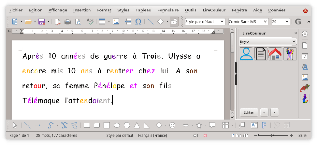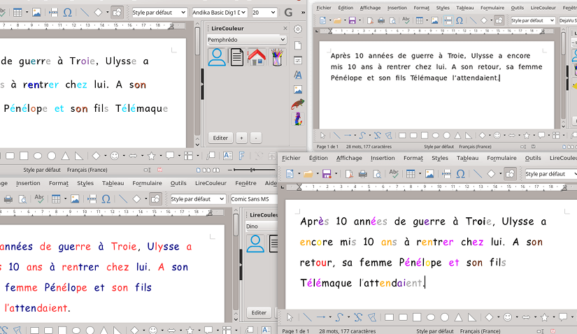 - le marquage des syllabes, par une alternance de couleurs ou par soulignement,