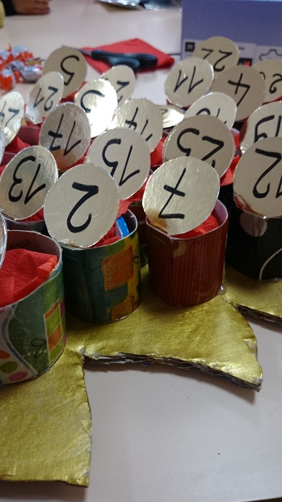 Arts visuelsFabriquer un calendrier de l’Avent 1 mars 202029 mars 2020 BB DIRLETTE J’ai utilisé du carton et des rouleaux de papier toilette vides puisque nous avons travaillé sur le recyclage. calendrier de l’Avent en maternelle avec du recyclage PartagerTweetJ’aime chargement… Similaire Publié par BB DIRLETTE Voir tous les articles par BB DIRLETTE