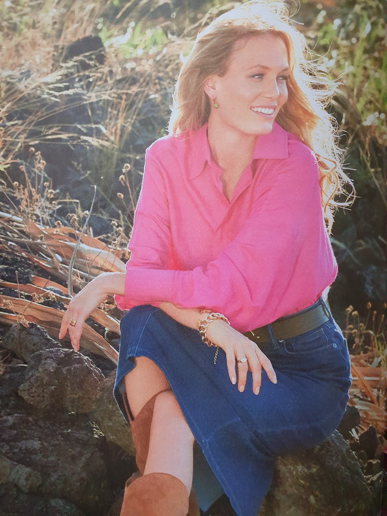 La vie en rose : Flatteur pour le teint et dynamisant pour le look, surtout lorsqu’il est soutenu, le rose nous veut du bien. Il se porte en toute saison, même en hiver. On l’associe avec une jupe en jean ou un jean clair. On privilégie des matières fluides. Et on pense aux accessoires. Pour le soir, il va plutôt s’associer avec du noir ou du gris foncé. Joie de vivre assurée. Sur la photo : Chemise et bracelet gourmette chez H&M Jupe chez Uniglo Ceinture chez Aline Schmitt Boucles d’oreilles chez Luceparis.fr Montre et bagues chez Thomas Sabo Bottes chez Mango