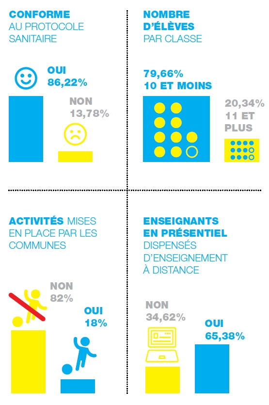 Les conseils d’école, rassemblant enseignants, délégués des parents et représentant de la commune, ne se sont réunis que pour seulement 19% des écoles, et 1/5 d’entre eux n’ont pas validé les modalités d’organisation retenues.